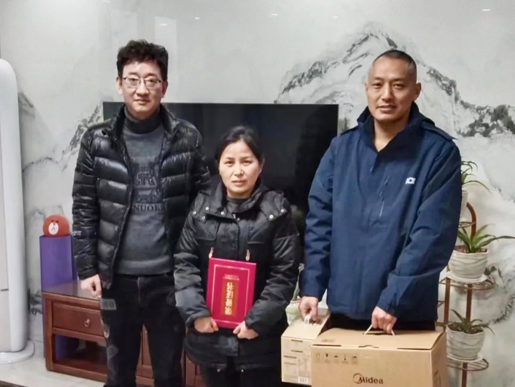 1月14日,豐源高科組織慰問年度評優(yōu)評先員工代表,互感器車間生產(chǎn)副總王慶虎、成套車間生產(chǎn)副總童政帶領(lǐng)相關(guān)部門負(fù)責(zé)人一同前往員工家里,向他們致以新春的美好祝福,并送去過節(jié)慰問禮品。